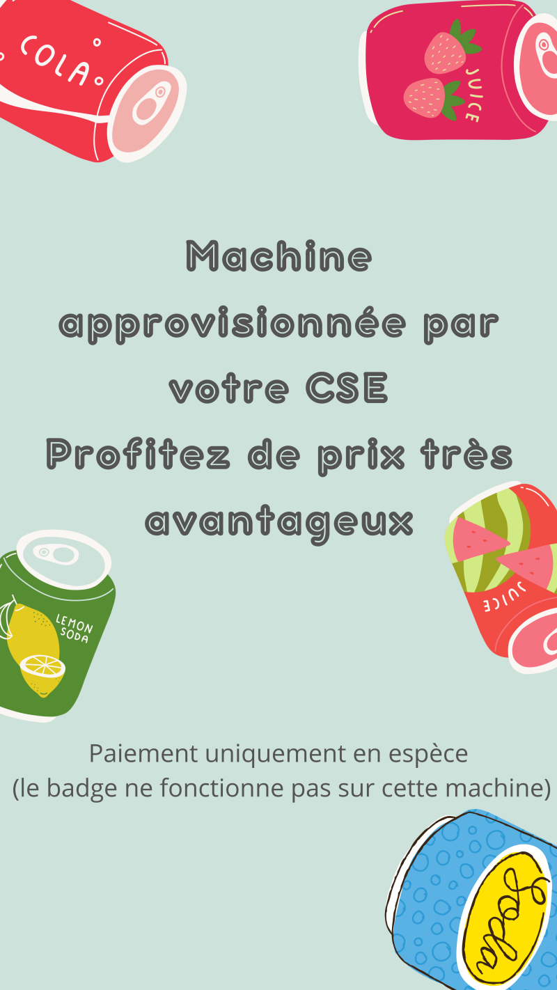 La machine à boissons est désormais gérée par le CSE, venez profiter des prix avantageux !